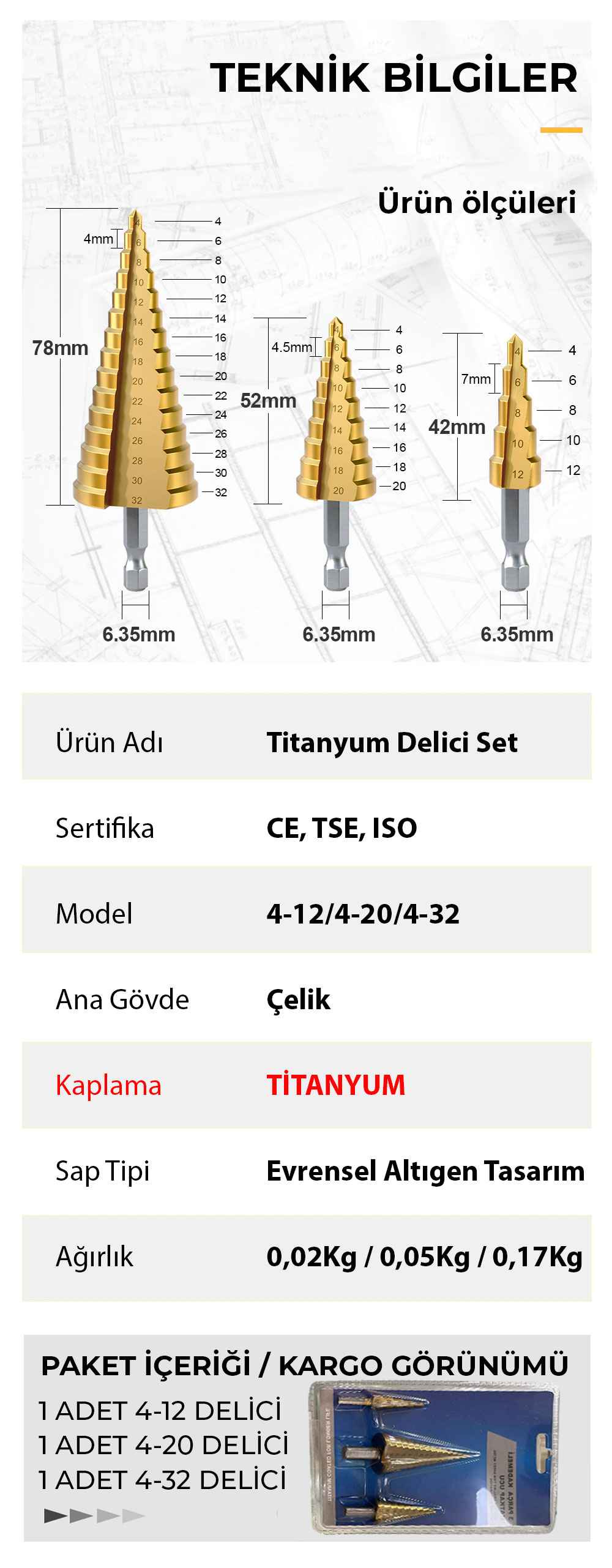 3 Set Titanyum Matkap Ucu -